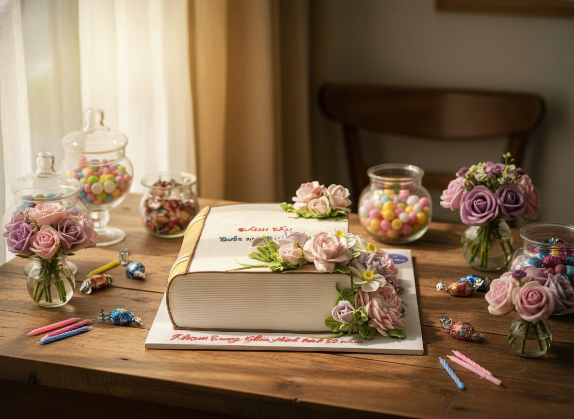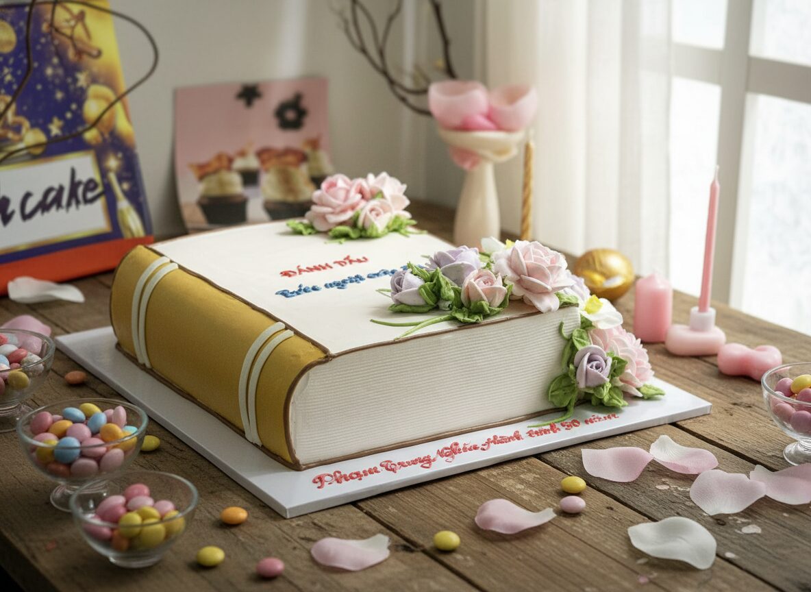 “Dấu Ấn Vàng Son” một kiệt tác bánh kem hình cuốn sách mở ra những trang kỷ niệm. Từng cánh hoa hồng, thủy tiên, mẫu đơn tuyệt mỹ được tạo hình thủ công tinh xảo, phủ lên lớp kem bơ mềm mượt, mang sắc màu pastel dịu dàng. Bên trong là cốt bánh bông lan mềm mại, đan xen hương vani ngọt ngào cùng nhân trái cây tươi mát, đánh thức mọi giác quan. Chiếc bánh không chỉ là món quà mà còn là biểu tượng cho hành trình 50 năm đáng tự hào, ghi dấu khoảnh khắc bước ngoặt cuộc đời một cách sang trọng và đầy ý nghĩa.